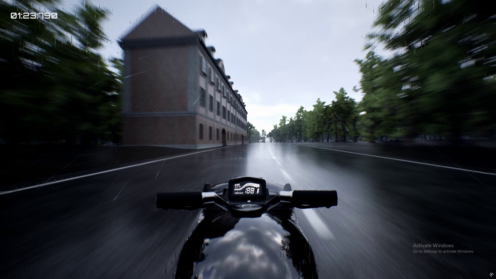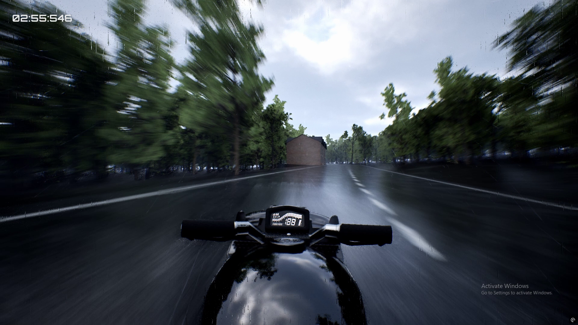 Great game! I love the feeling of speed on the bike. The road, the bike it all looks really nice. The rain too. The sound could use a little bit of work (just to add a bit more variation in the gears) but its good driving sim!